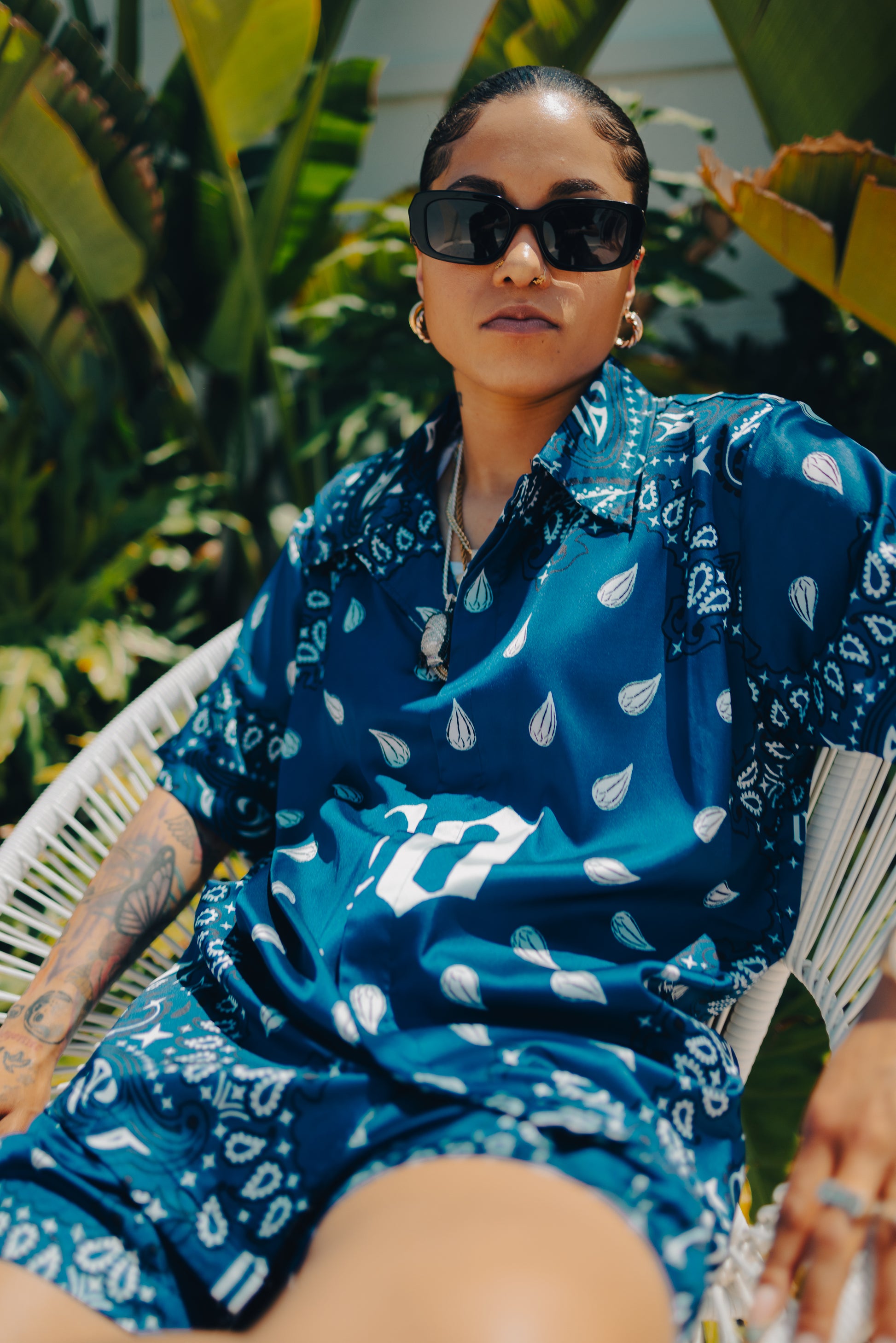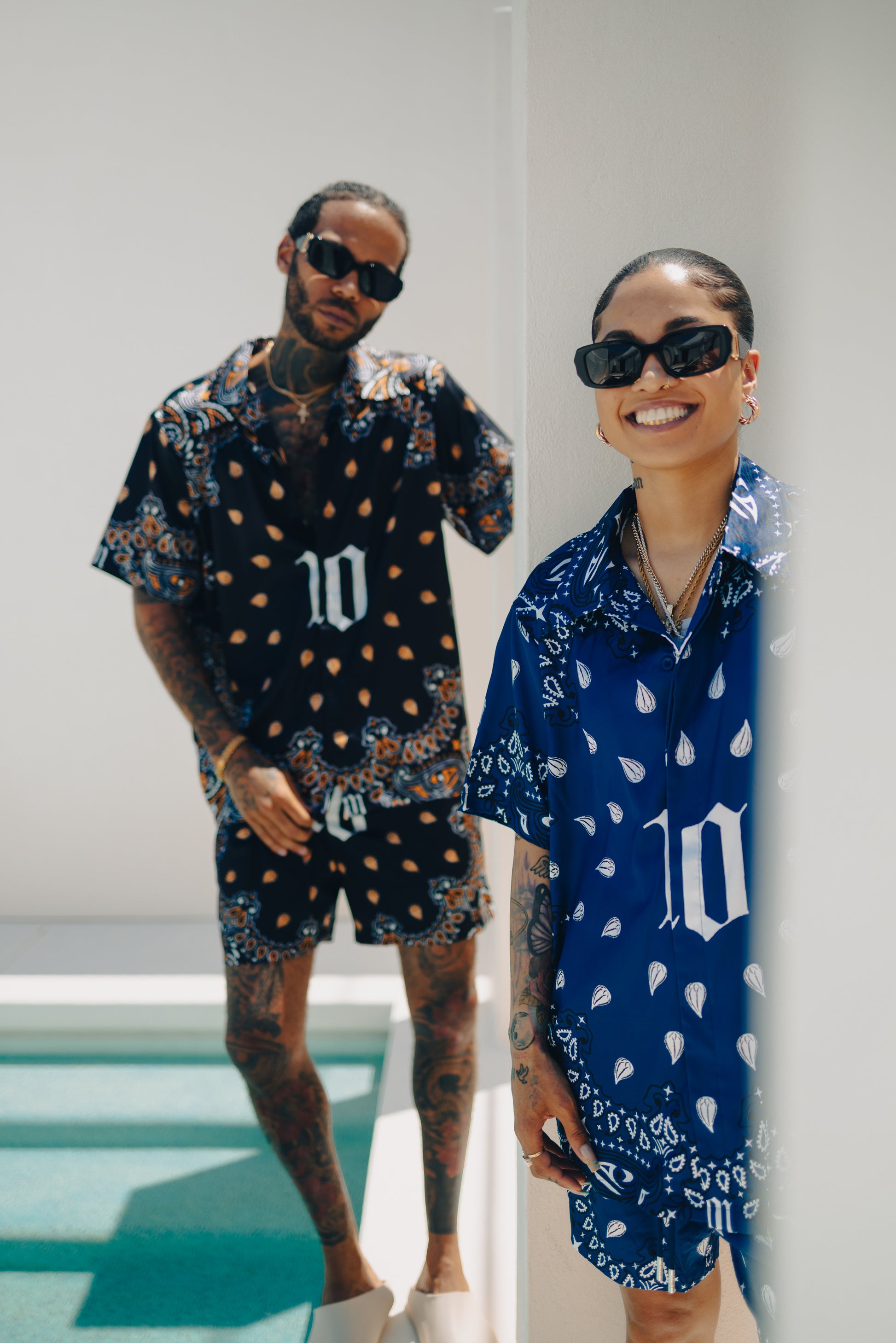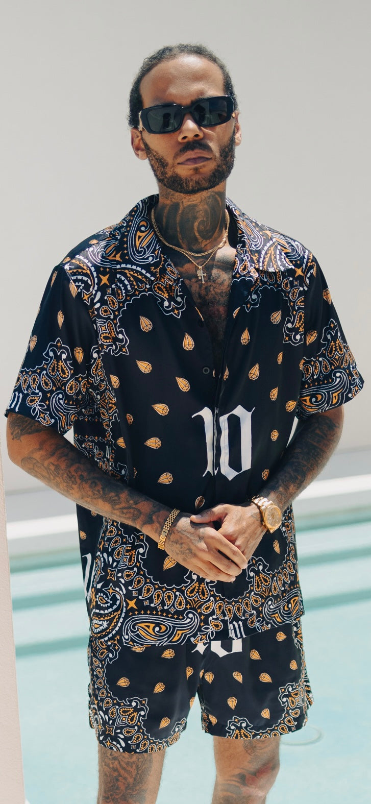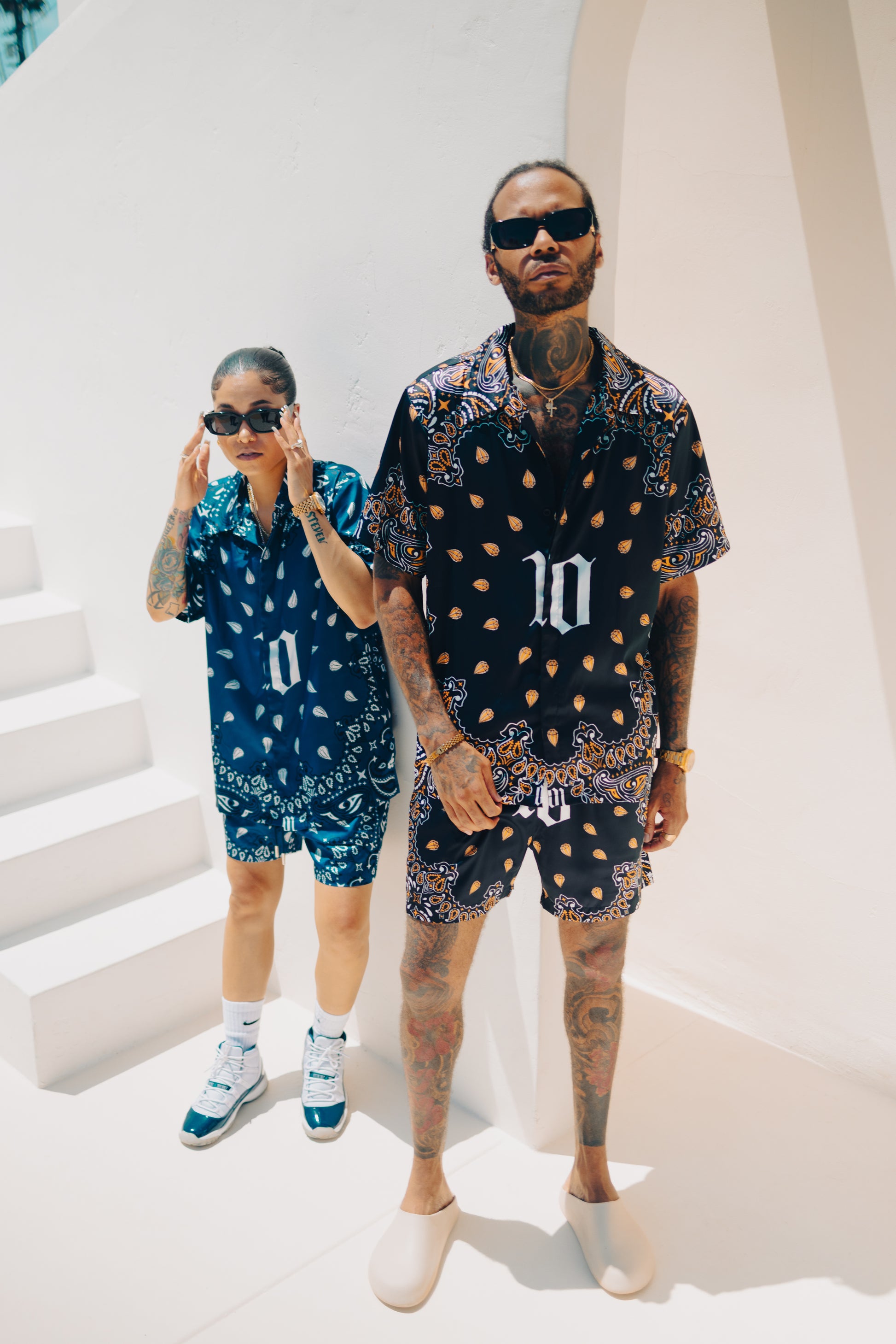 "Above it All” Collection embodies the essence of luxury streetwear in summer form a reflection of ambition, cool confidence, and timeless elevation. The silk two-piece paisley sets merge classic bandana culture with Cloud10’s signature rain drop logo and bold “10” mark a symbol of pushing past limits and doing it in effortless style.